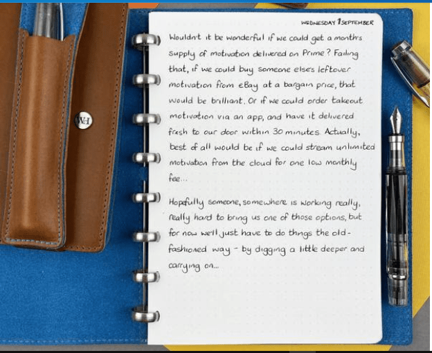When my daughter was younger she would make a point to remind me of something. On the 1st September she would say, ‘ we are in the ’embers’! That was her way of saying, lets re-group after the summer holidays and knuckle down for the autumn. I received the attached and thought I would share it. We can’t get motivation from the cloud just yet so we’ll just have to use the manual option for now.