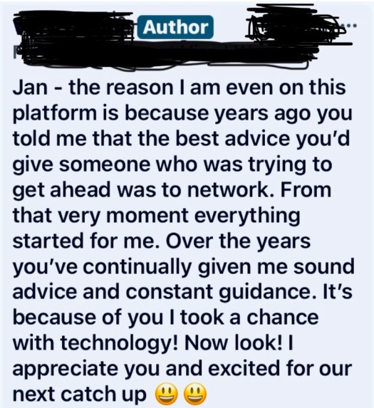 I’ve had the pleasure of knowing Jan over the past year. The dedication, passion, and professionalism are unmatched and evident in her eloquent speech and calm demeanor. A mountain of knowledge, always at hand to offer guidance and empowerment into the right channels, taking me that one step closer to understanding the road to success. 21, young and naive pursuing business ventures, your inexperience becomes evident and Jan has been there to help me every step of the way.